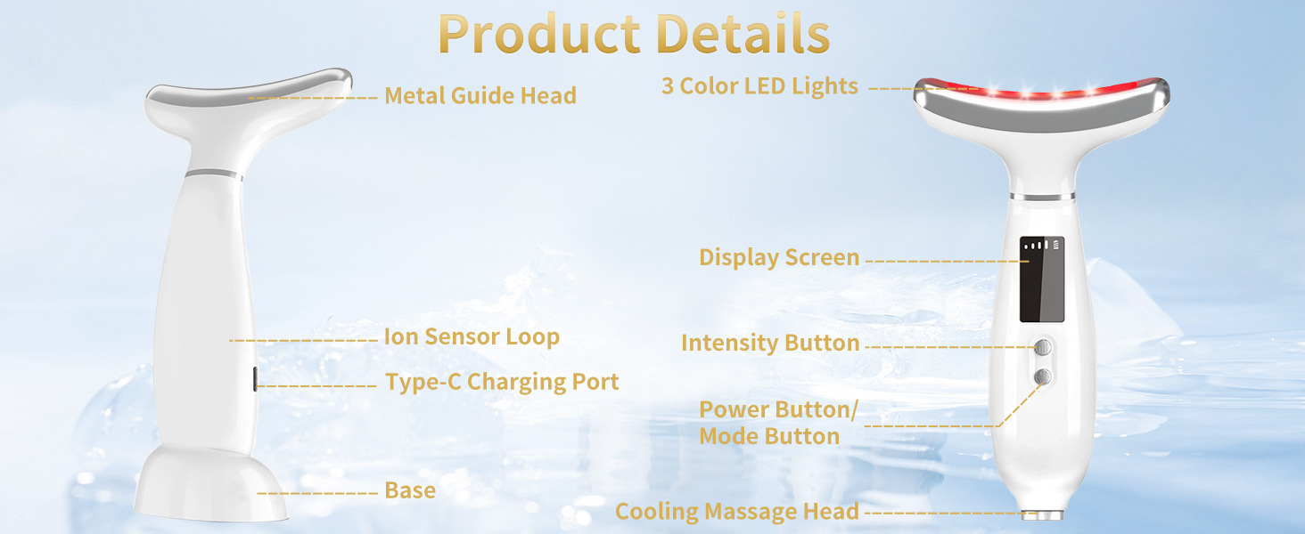 Functions: Vibration, light therapy, lifting, wrinkle reduction